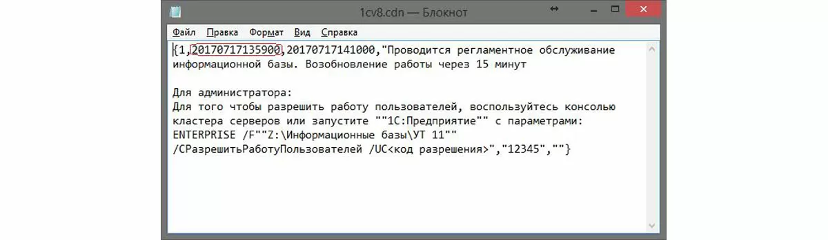 *Завершение сеансов пользователей в старых конфигурациях происходит чуть позже назначенного времени, т.к. пользователи сначала получают оповещение «Работа системы завершается».