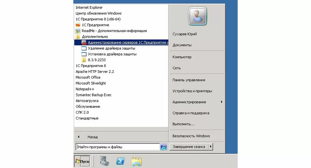 Оснастка «Администрирование серверов 1С:Предприятия» часто установлена на том же сервере, где развернут SQL server, а также где развернут сам «Сервер 1С» (или «Сервер приложений 1С»). Хотя это и не обязательно: SQL может быть установлен на одном компьютере, «Сервер приложений 1С» – на другом, а оснастку можно развернуть и на своей рабочей станции. С большой вероятностью успеха можно достигнуть, сделав следующее: