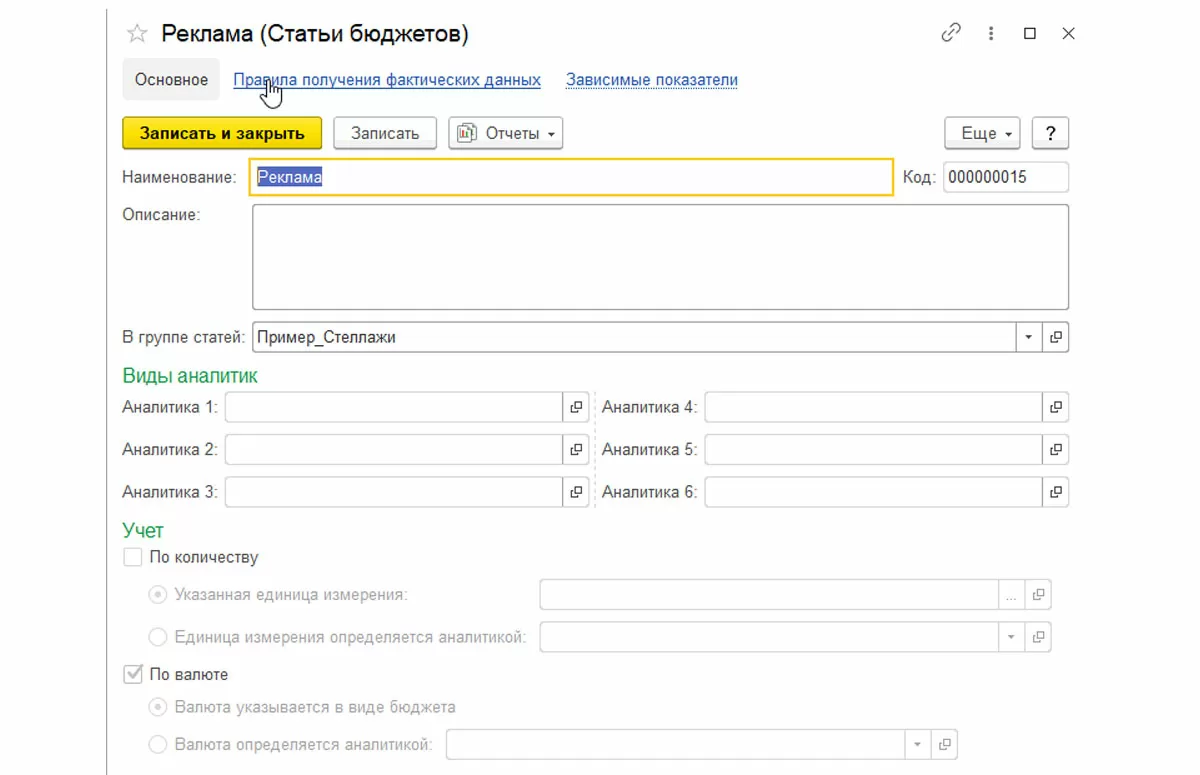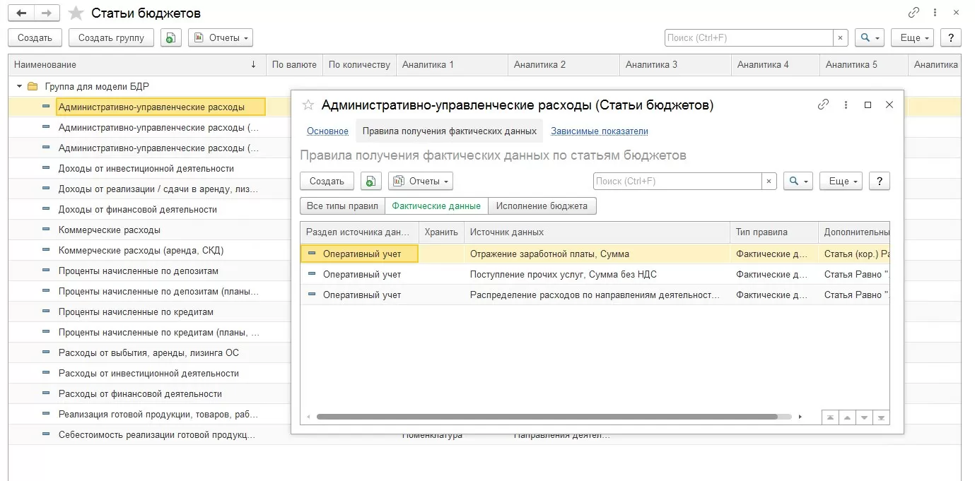 Правила получения фактических данных применяются, чтобы определить какие именно данные будут записаны по статье. При наличии нескольких правил в показателях полученная будет суммироваться.