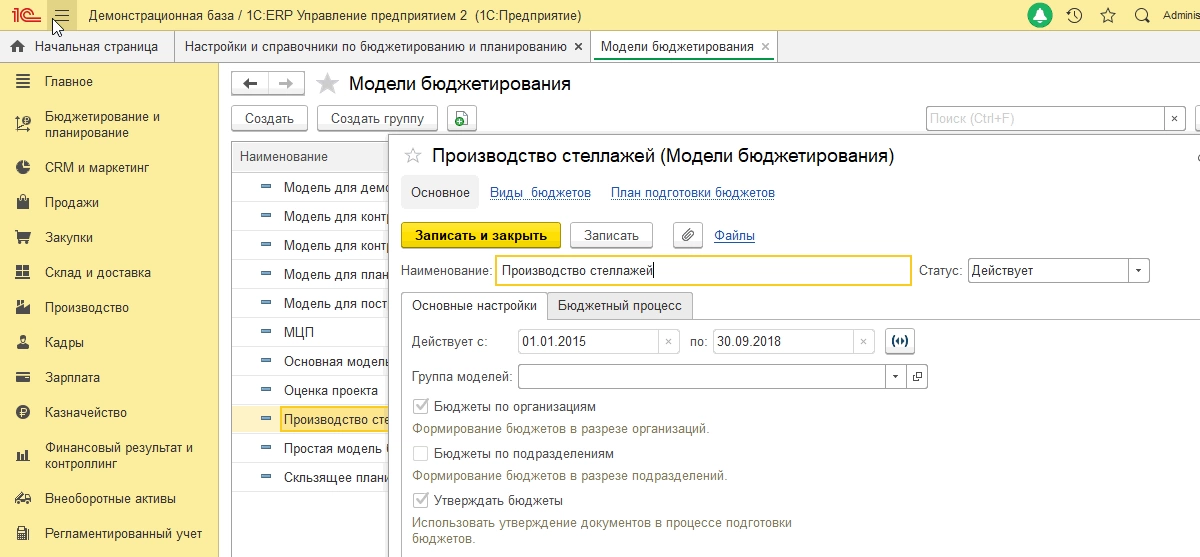 - Можно использовать любое количество моделей бюджетирования одновременно.