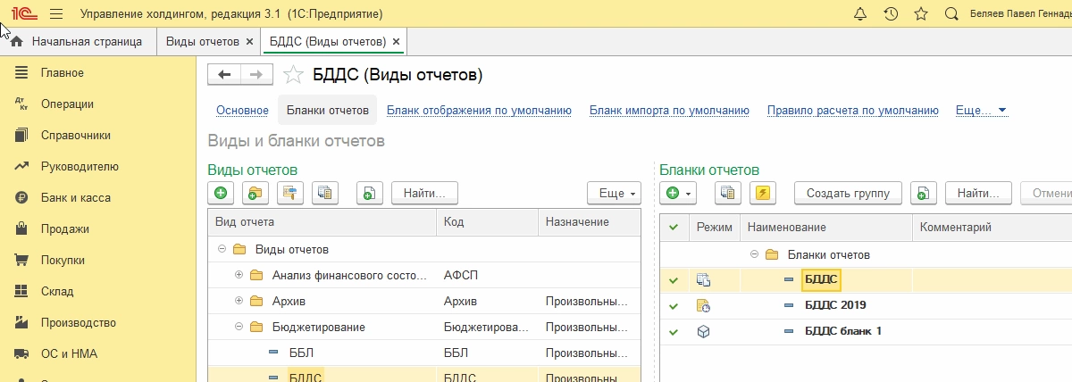 Создание требуемого отчета (Бюджет доходов и расходов, Бюджет движения денежных средств и Бюджет движения ресурсов) выполняется в справочнике «Виды отчетов» с возможностью настройки:
