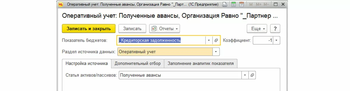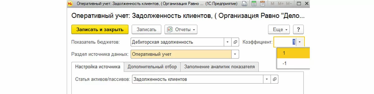 Также стоит обратить внимание на выбранный коэффициент. Для активов рекомендуется выбрать положительное значение, а для пассивов, соответственно, – отрицательное. Но могут быть и исключения, все зависит от настройки вида бюджета.