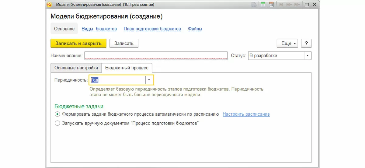 Настройка бюджетного процесса для модели бюджетирования позволяет определить базовую периодичность подготовки бюджетов и выбрать способ запуска бюджетного процесса: вручную или автоматически.