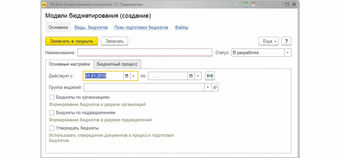 При заполнении модели бюджетирования необходимо заполнить основные настройки и настройки бюджетного процесса.