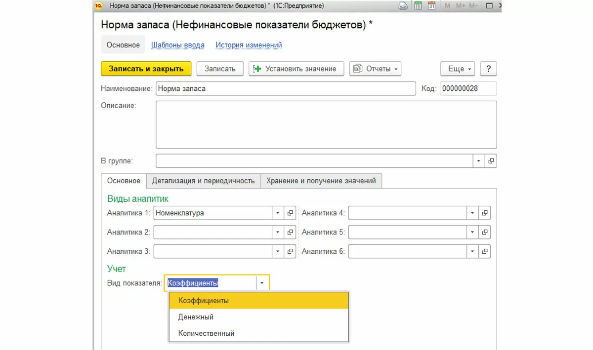 Общее описание типов показателя дано в самом элементе справочника. Как это выглядит на деле, рассмотрим по тексту ниже на конкретном примере.