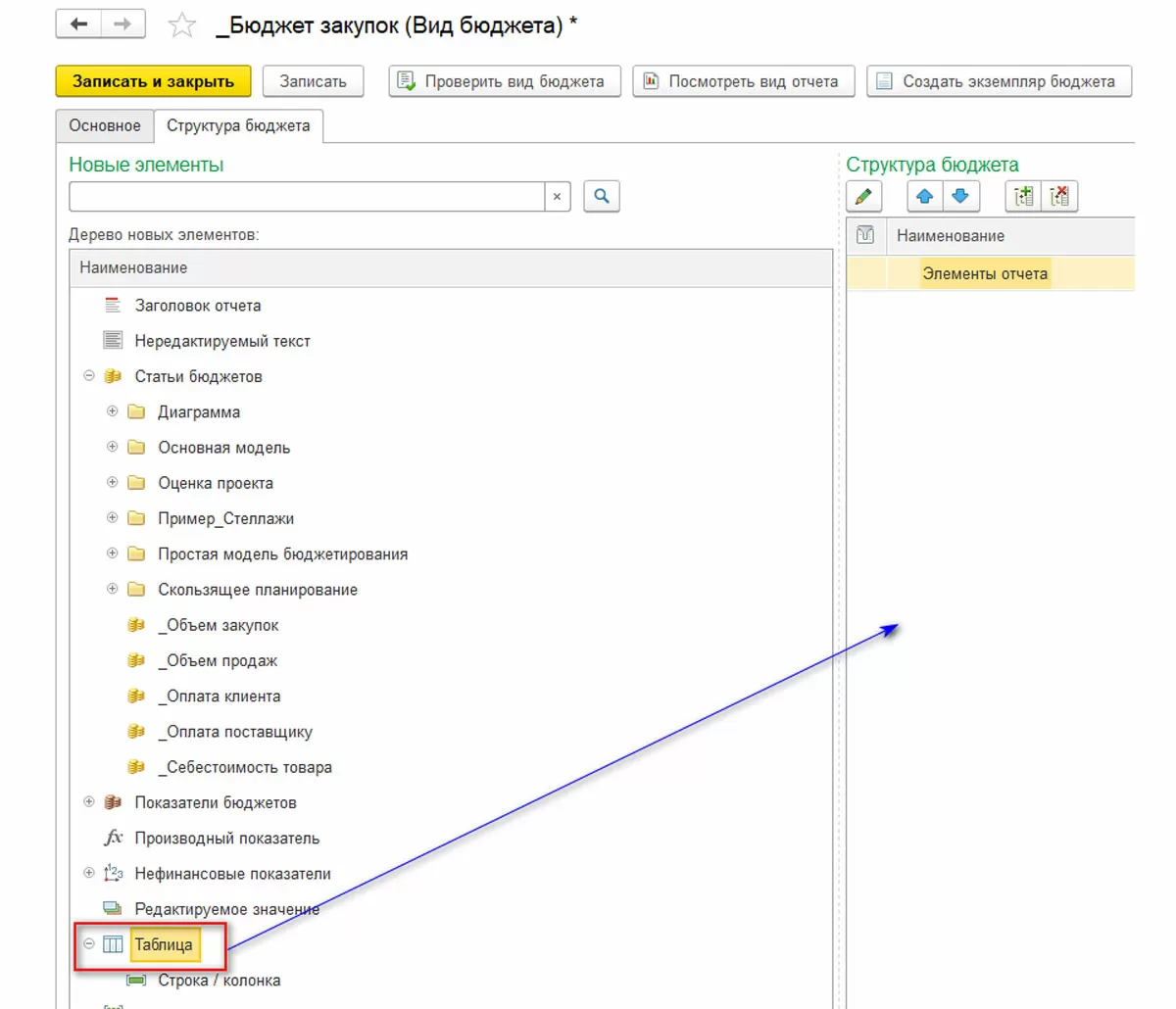 Вид бюджетов представляет собой некий конструктор. С левой стороны мы видим элементы – детали конструктора, с правой – то, что мы «сконструировали» в схематичном выражении.