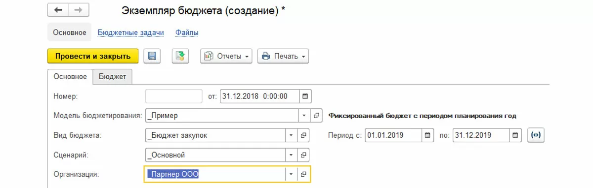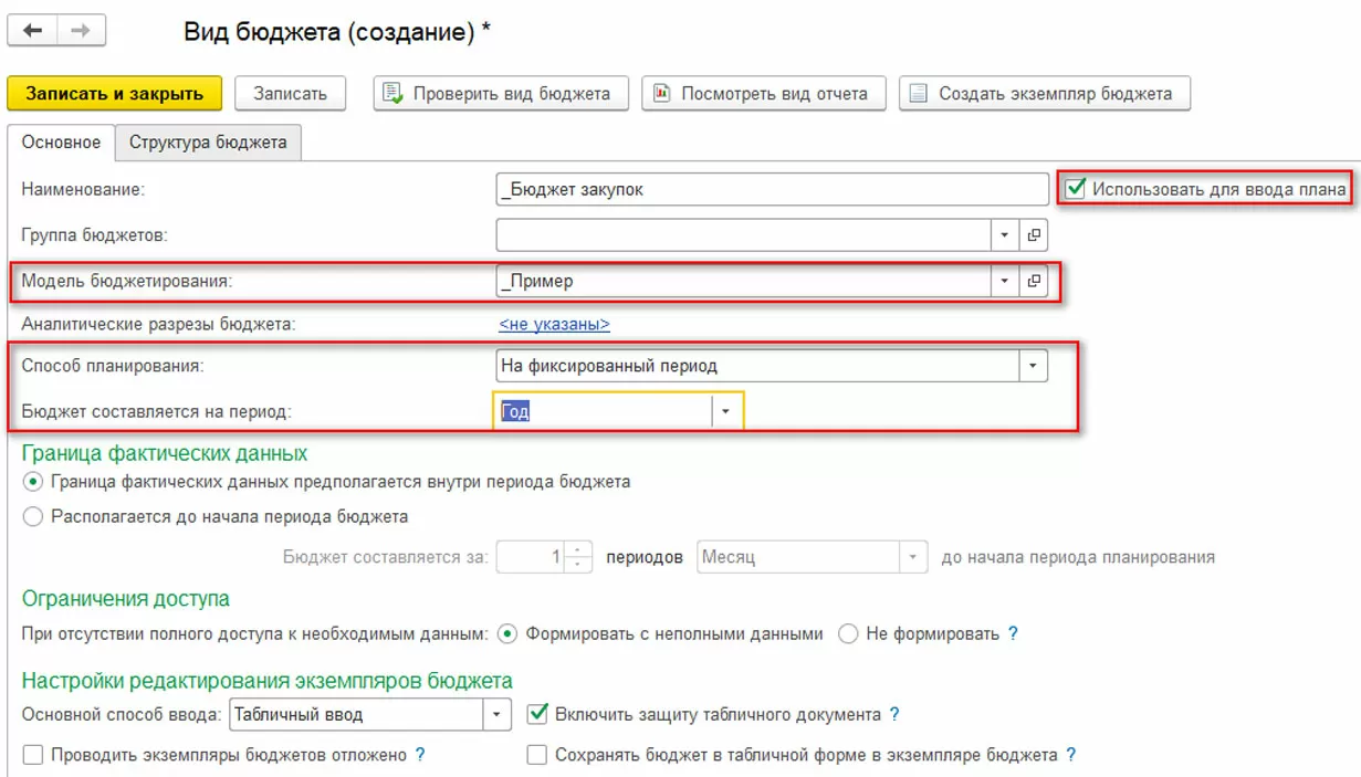 Завершаем редактирование. Создаем и записываем экземпляр бюджета.