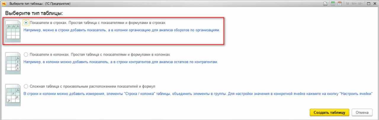 В этот момент система предлагает нам выбрать вид таблицы. Выбираем Простую таблицу (расположение строк и колонок в простой таблице выбирается в зависимости от наполнения бюджета – наиболее удобный для использования вариант).