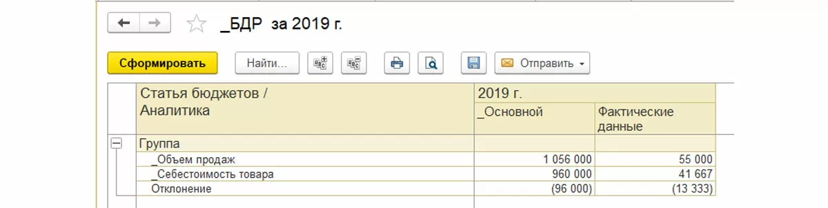 - БДР (отчет, простая таблица, с фактическими данными);