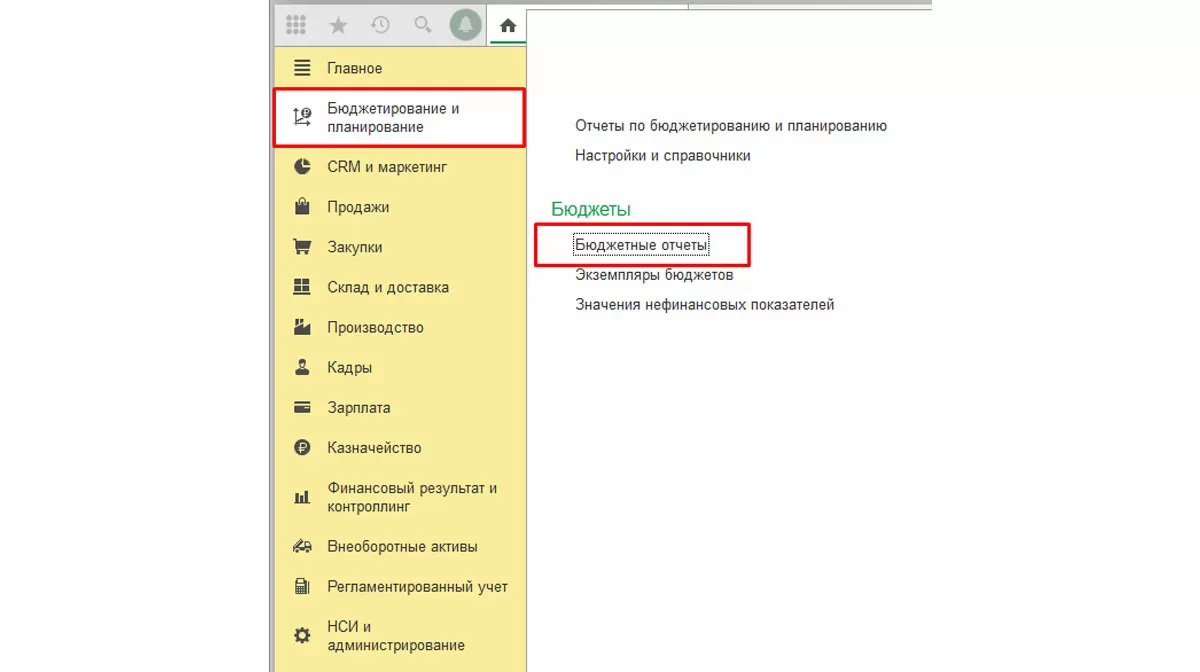 Отчеты доступны в разделе «Бюджетирование и планирование-Бюджеты-Бюджетные отчеты».