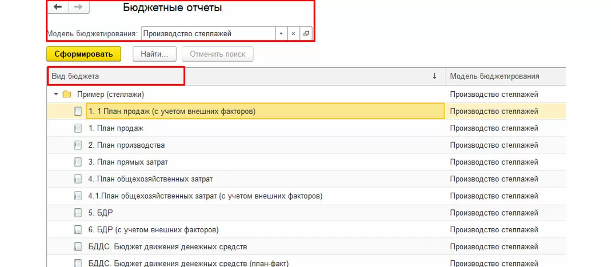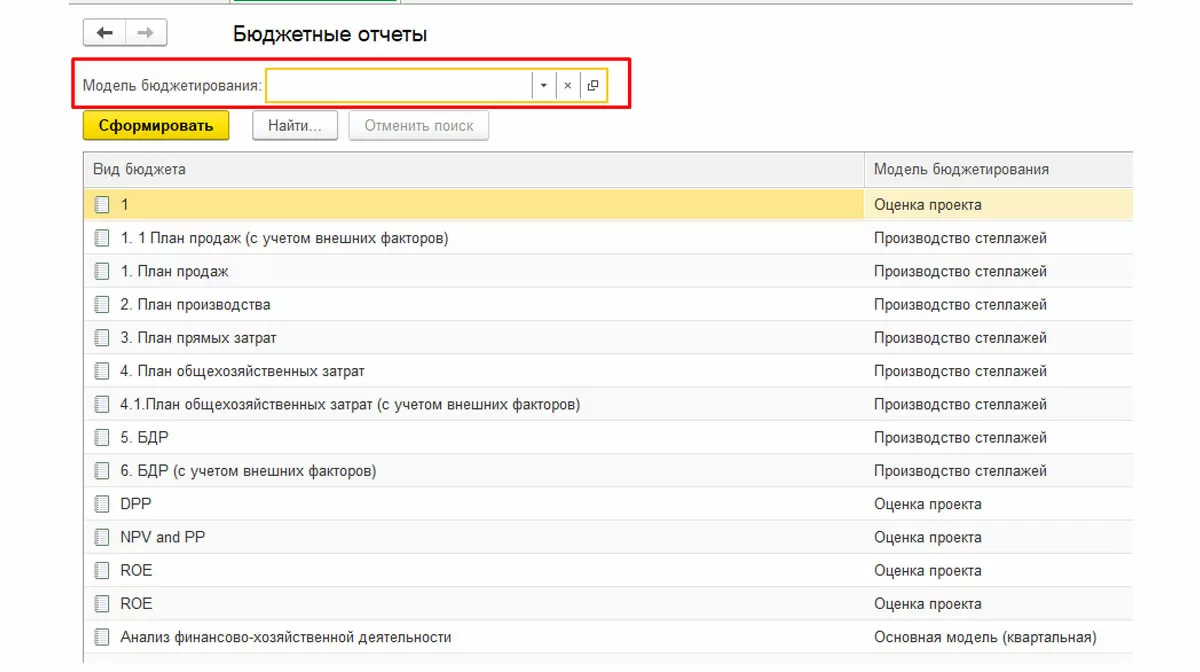 В открывшейся форме можно установить отбор по модели бюджетирования.