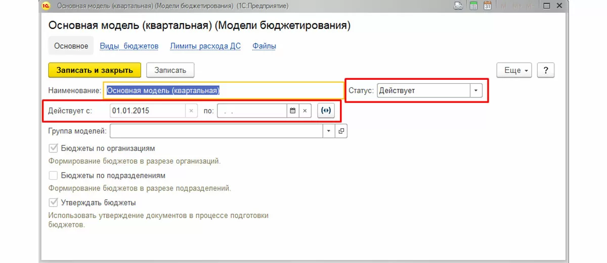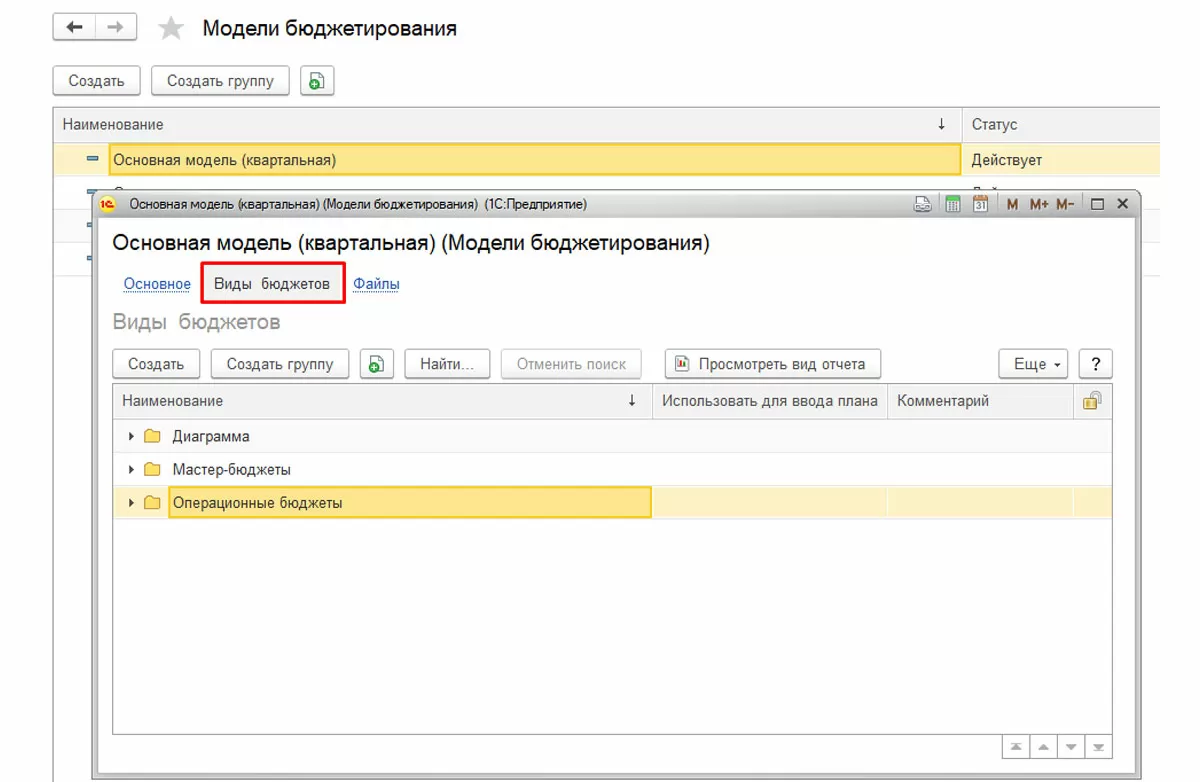 Настройка справочника «Модели бюджетирования»