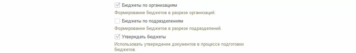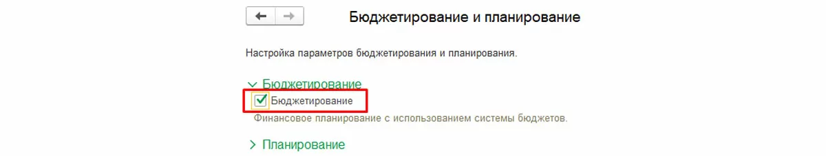 В открывшемся окне настройки установить флаг «Бюджетирование».