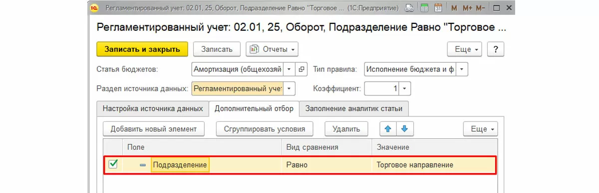 Правила можно настраивать с детализацией по дополнительным отборам и аналитикам.