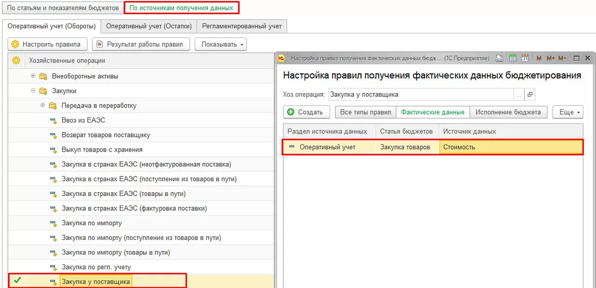 В 1С Комплексная автоматизация 2 фактические данные в подсистеме бюджетирования не хранятся и не вводятся отдельными документами, а берутся из данных оперативного и/или регламентированного учета в тот момент, когда они нам нужны.