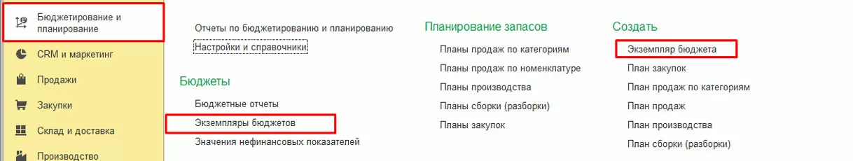 Для первичного планирования и внесения изменений в плановые данные в системе используется документ «Экземпляр бюджета».