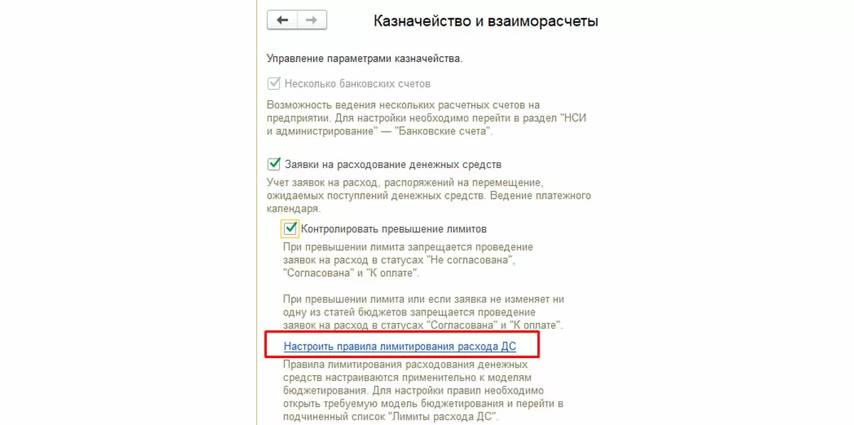 Из этой настройки можно перейти сразу в «Правила лимитирования расхода ДС».