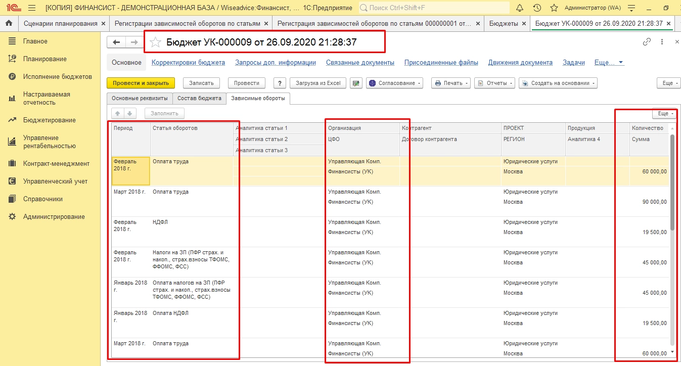 Планирование бюджета в 1С