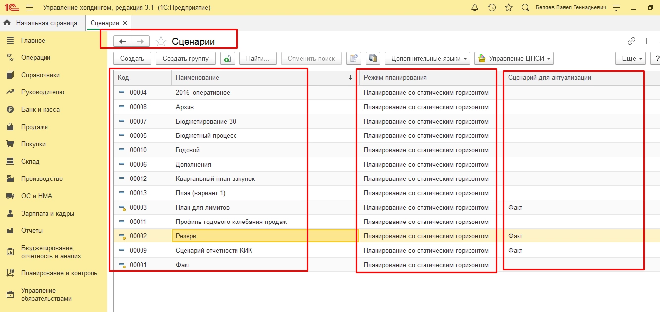 В «1С:ERP Управление предприятием» данный инструмент называется «Сценарий бюджетирования».