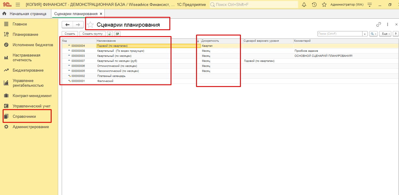 В программе «WA:Финансист» тоже предусмотрена возможность использовать вариативность сценариев для бюджетирования БДДС.