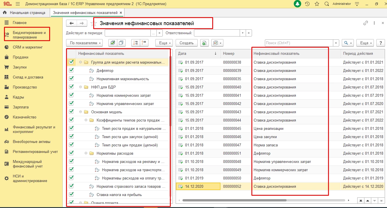 Инструмент для бюджетирования движения денежных средств в 1С:ERP – «Нефинансовые показатели», помогает рассчитать и зарегистрировать зависимые друг от друга статьи бюджетов, например, оклады, нормы, коэффициенты, цены, площади, численность и т.д. Также с его помощью можно планировать и проводить план-фактный контроль по статьям бюджетов.
