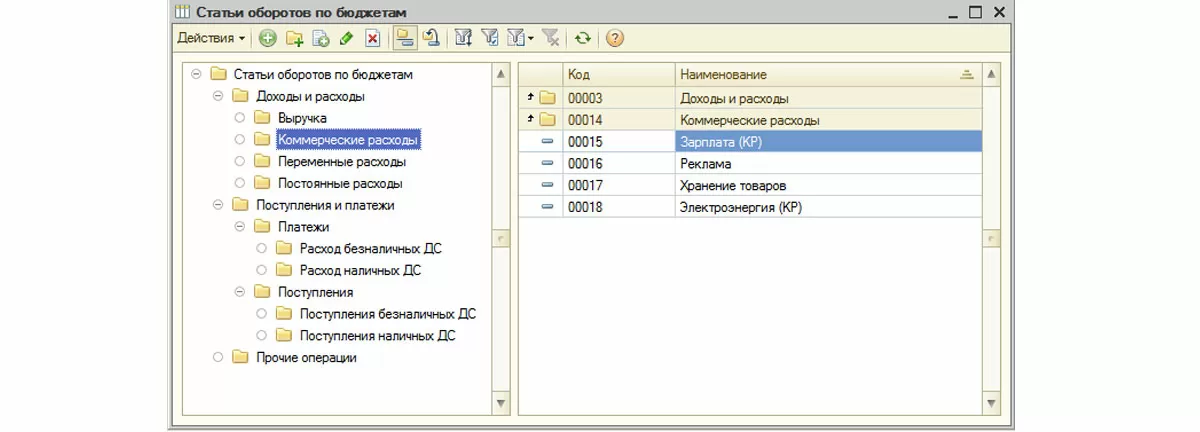 Справочник «Статьи оборотов по бюджетам» в подсистеме Бюджетирование в 1С УПП
