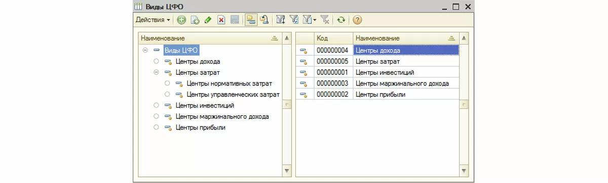 Настройка производится в Справочнике «Виды ЦФО», в соответствии с бизнес-требованиями пользователей.