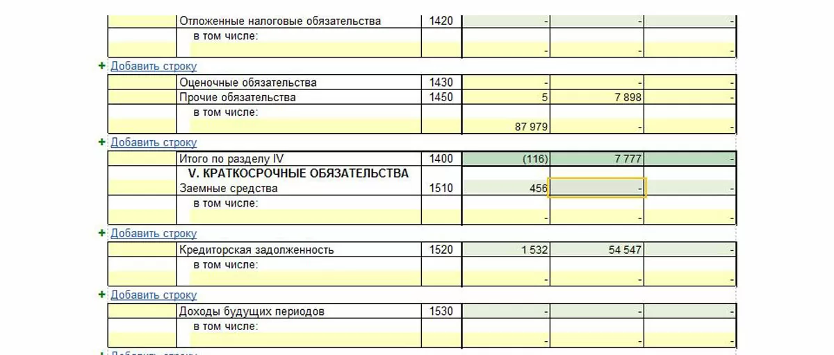 Тут же можно добавить строки, нажав в нужном разделе «Добавить строку».
