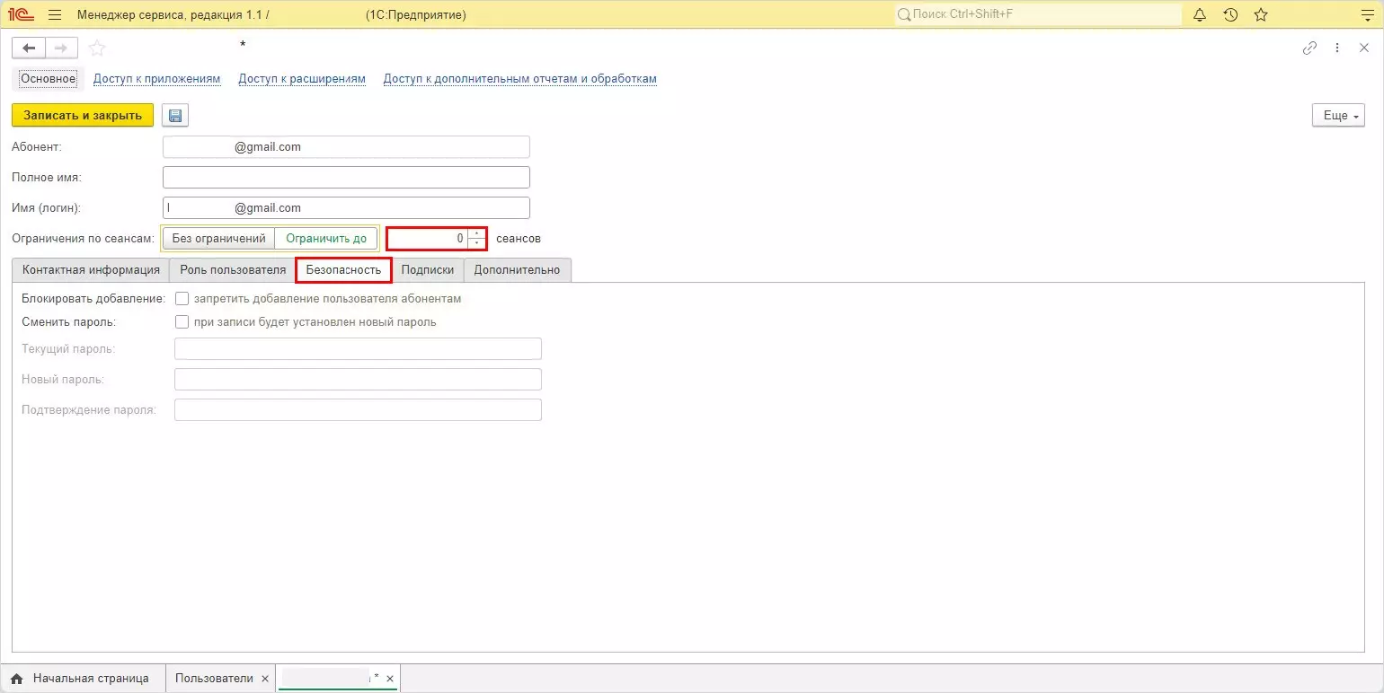Кадровый учет и расчет з/п можно вести удаленно! 1С:ЗУП в облаке – подключим за 5 минутНа вкладке «Безопасность» можно запретить добавлять других пользователей. По команде «Ограничить до» задайте число сеансов, это ограничит количество сеансов для данного пользователя.