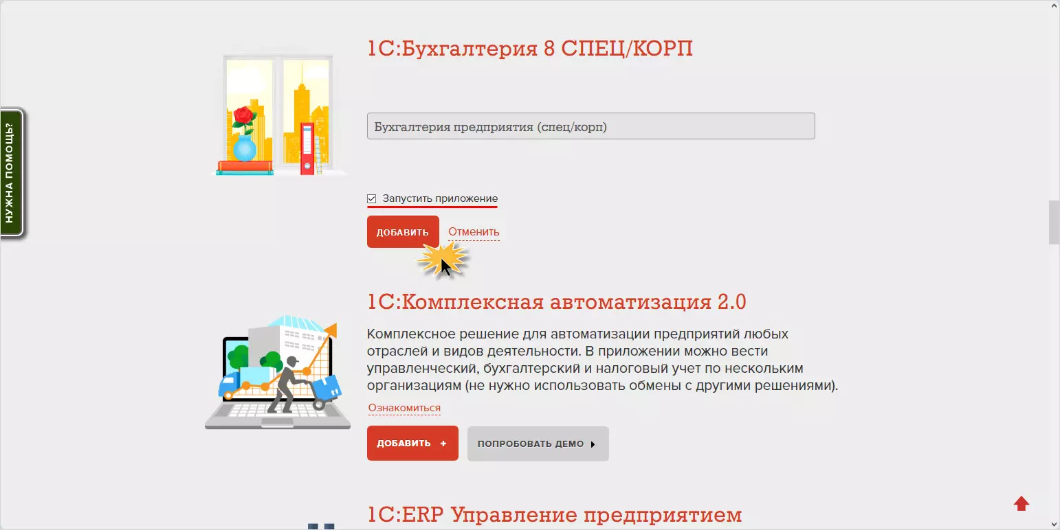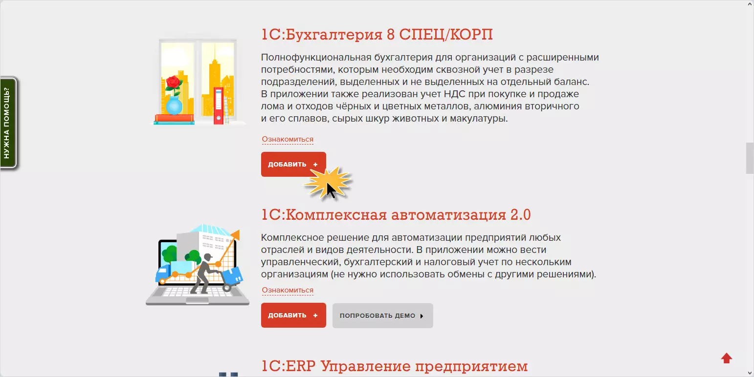 Для большинства конфигураций предусмотрены демоверсии. Они работают даже при отключенном, неоплаченном кабинете – «Попробовать демо».