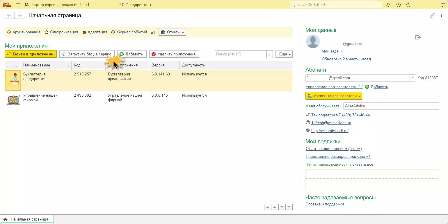 Личный кабинет 1С:Фреш – Менеджер сервиса