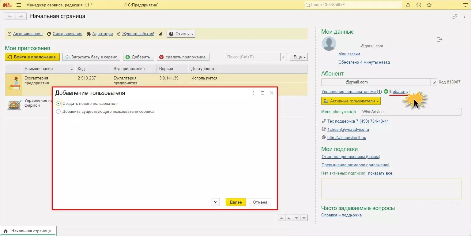 Вы можете добавить пользователей и определить им права на запуск конкретного приложения. Например, бухгалтеру по зарплате настроить доступ к 1С:Зарплата и управление персоналом.