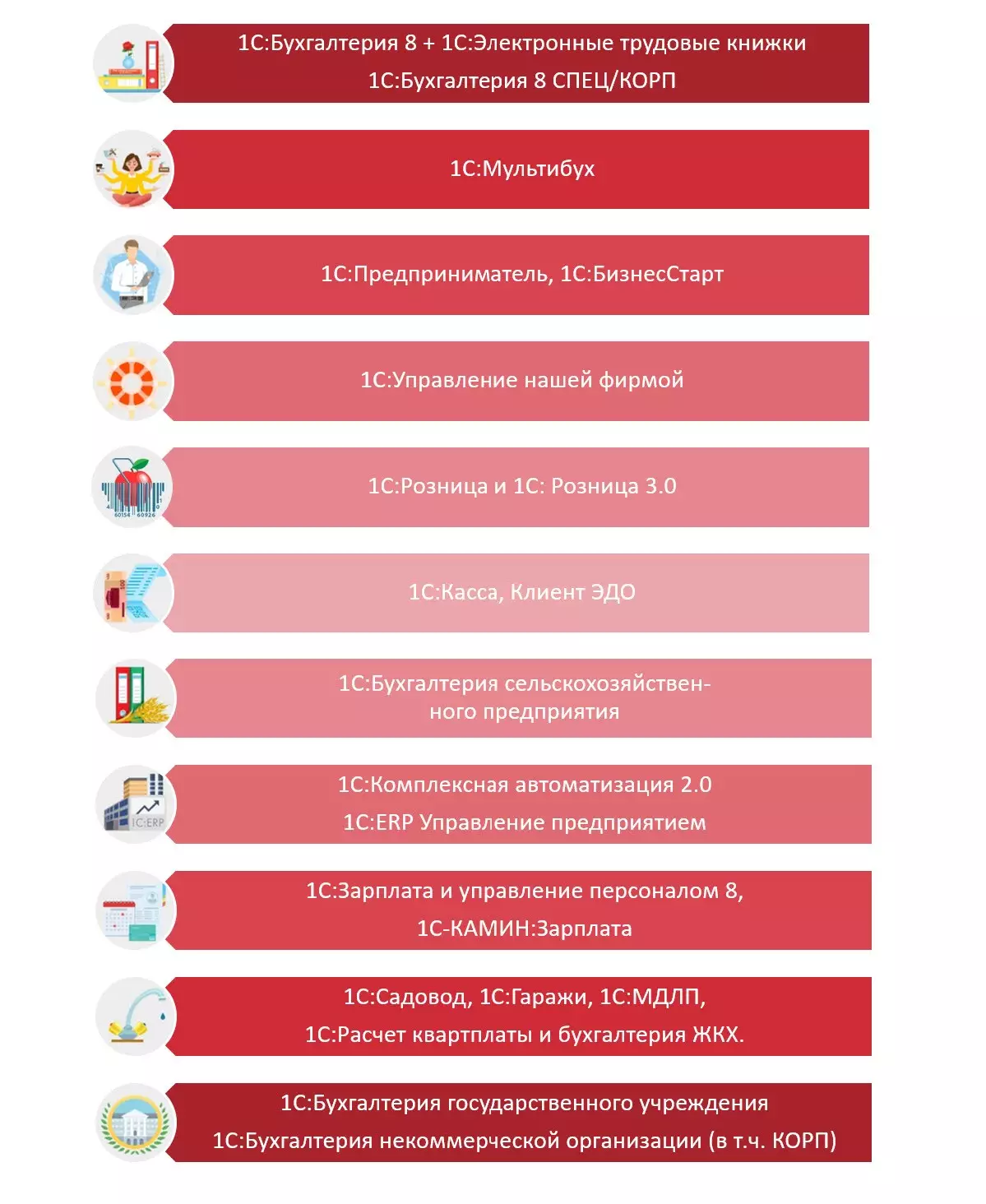 Сфера бизнеса и его объемы напрямую зависят на количество пользователей, кто будет открывать приложение 1С. По всем критериям выбора подходящего тарифа может быстро сориентировать наш консультант 1С.