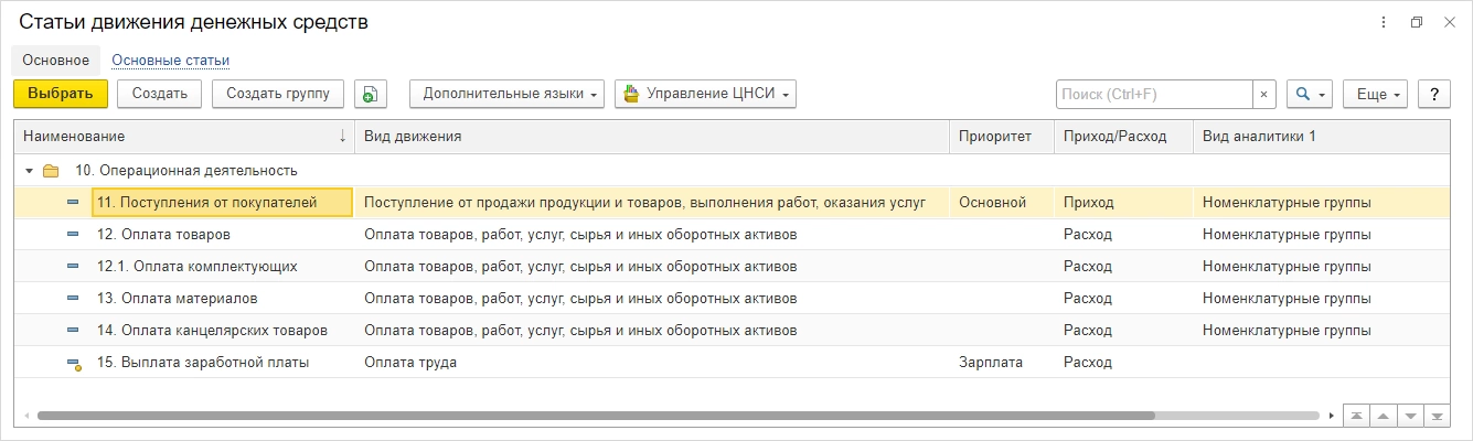 Внутри каждой статьи могут быть более подробные разделения – на виды продукции, поставщиков, подразделений организации для расчета заработной платы и многое другое для нужд компании.