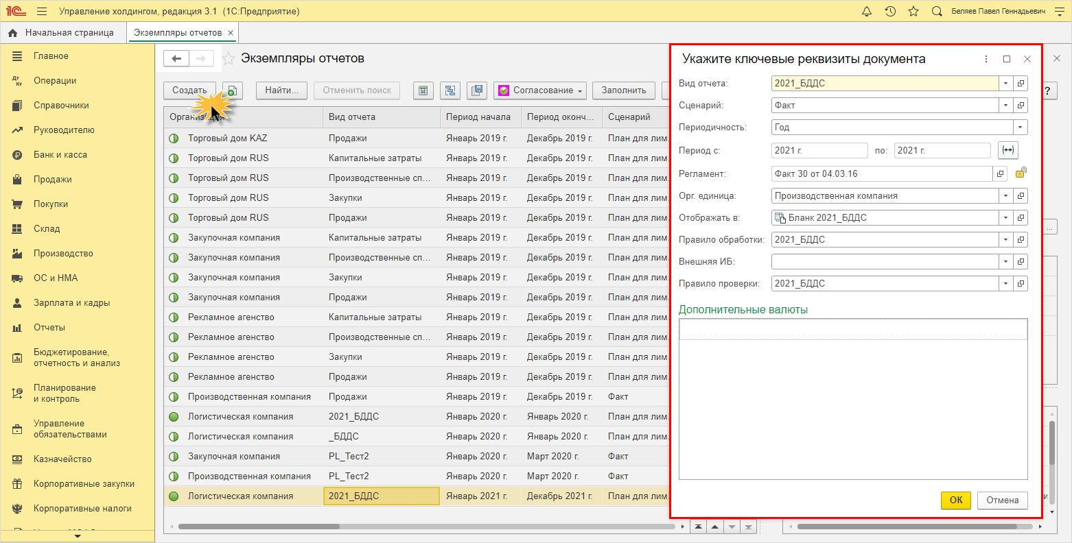 - Как сформировать ОДДС в 1С:Управление холдингом