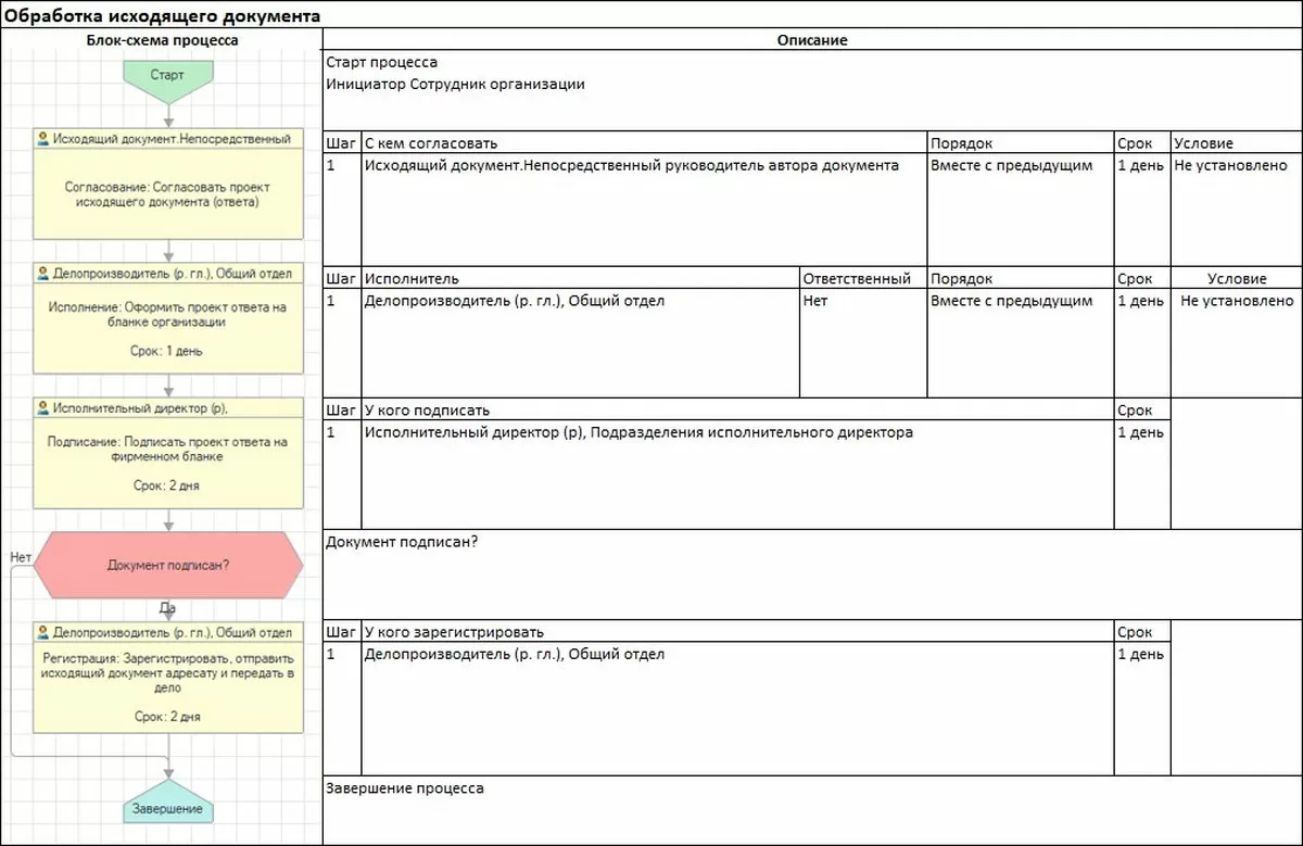 На данном этапе необходимо собрать достаточный объем информации с качественной степенью детализации для дальнейшего анализа и усовершенствования процедур обработки документов. Помимо основного инструмента - методики сбора информации путем анкетирования подразделений, вовлеченных в процедуры обработки документов, - далее на основе собранной информации можно подготовить маршрутные карты движения документа отдельно для каждого вида документа, заранее подготовив их макеты в табличном редакторе, например, Microsoft Excel.