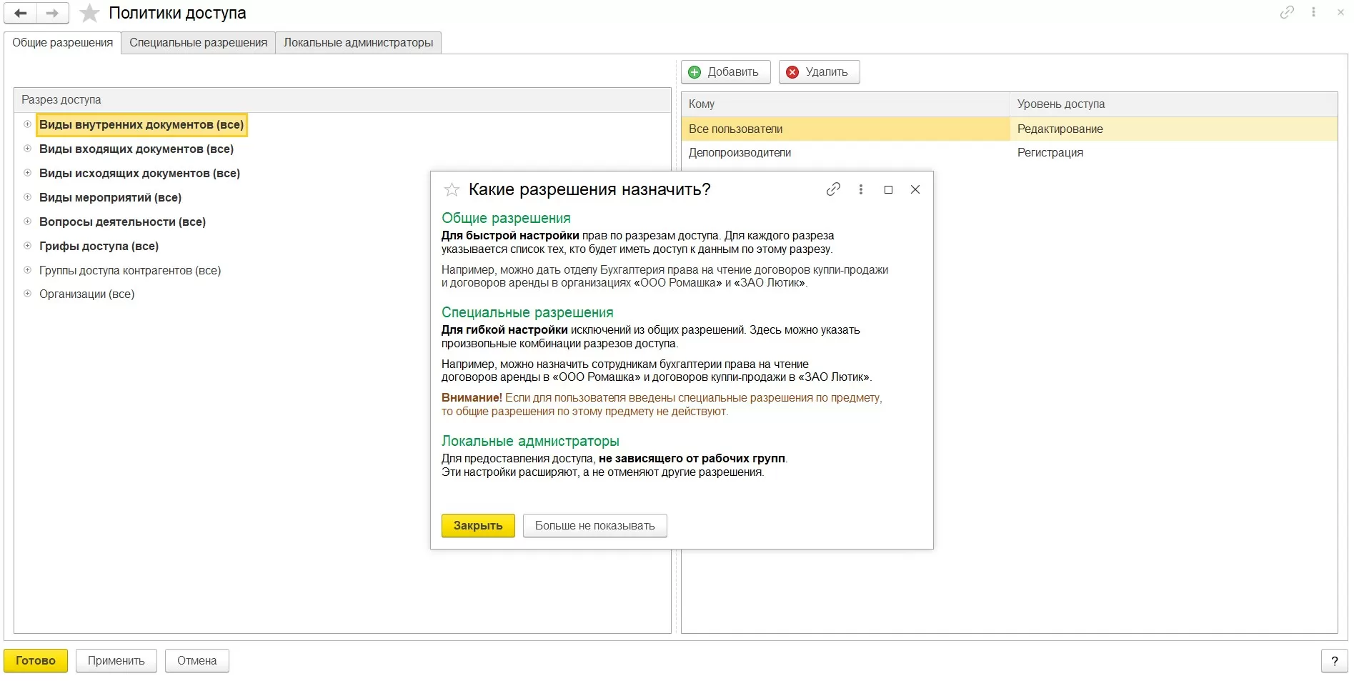 Подготовка информационной базы и общие настройки 1С:Документооборота