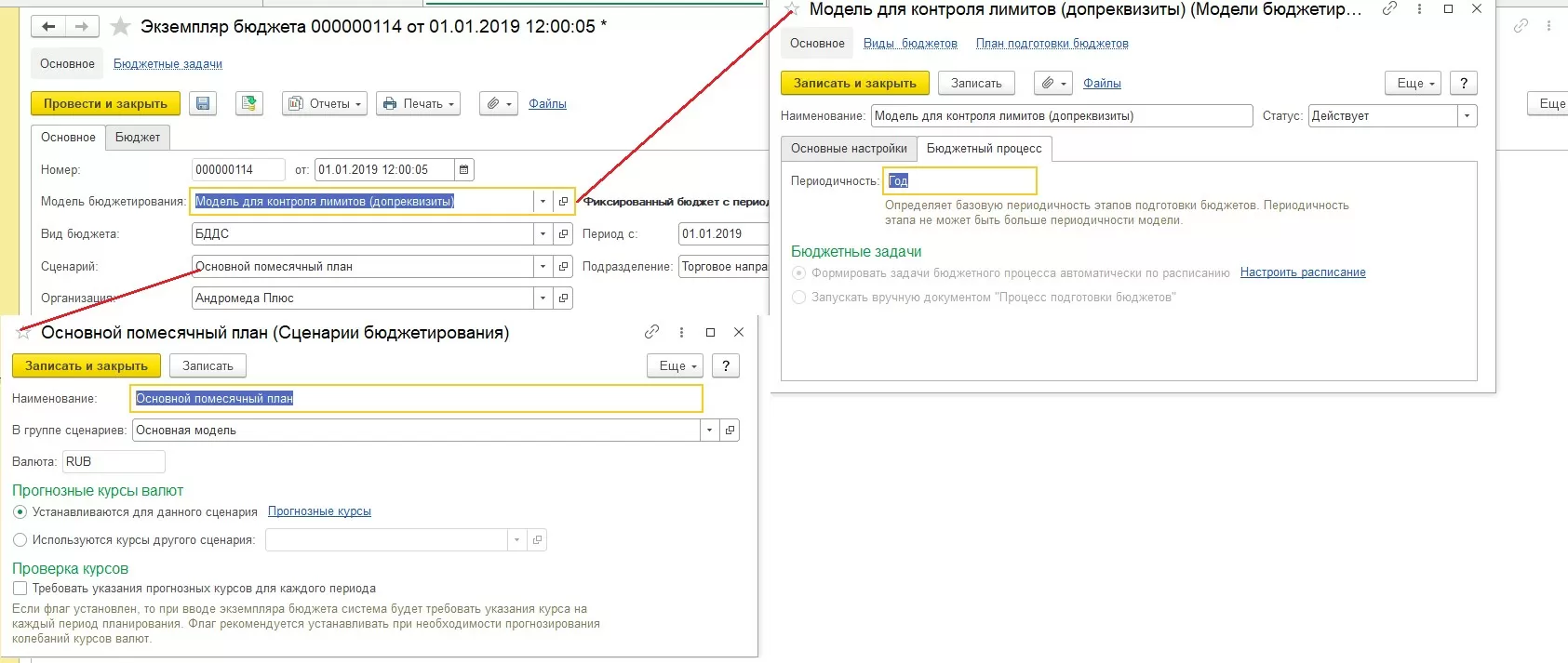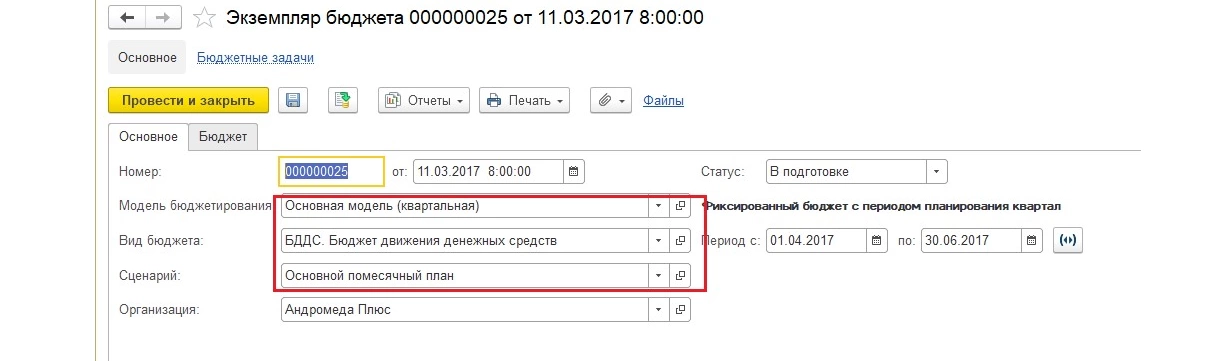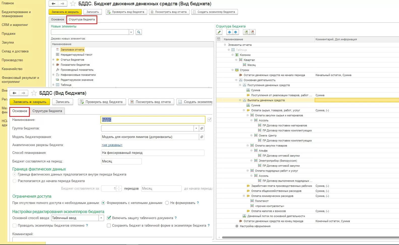 Для планирования и прогнозирования денежных потоков инвестпроекта в системе используют документ «Экземпляр бюджет» – бюджет БДДС, который можно настроить под нужды пользователя. Основные параметры бюджета настраиваются посредством модели, вида и сценария бюджетирования.