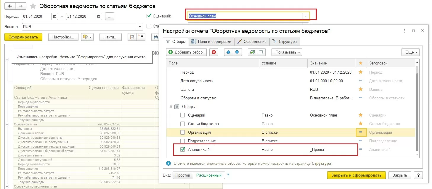 Отличительная особенность при настройках бюджетов – добавление в показатели и статьи ДДС аналитики «Направление деятельности». Это позволяет создавать планы под конкретный проект.