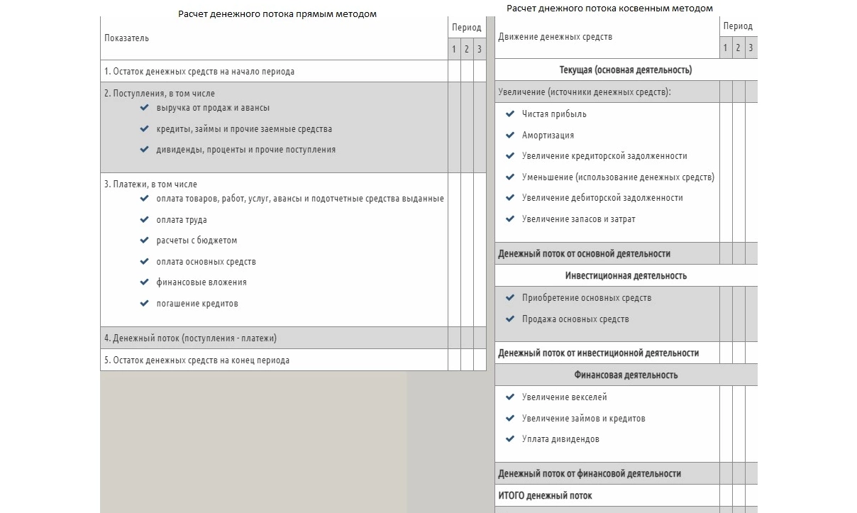 Расчет эффективности денежного потока может быть осуществлен двумя методами – прямым или косвенным. Основное различие данных методов заключается только в принципах анализа денежных потоков от операционной деятельности.
