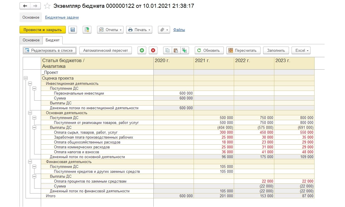 В системе для настройки бюджета по расчету денежных потоков проекта предусмотрены готовые типовые статьи ДДС и показатели (как финансовые, так и нефинансовые), которые позволяют учитывать, например, условия дисконтирования.