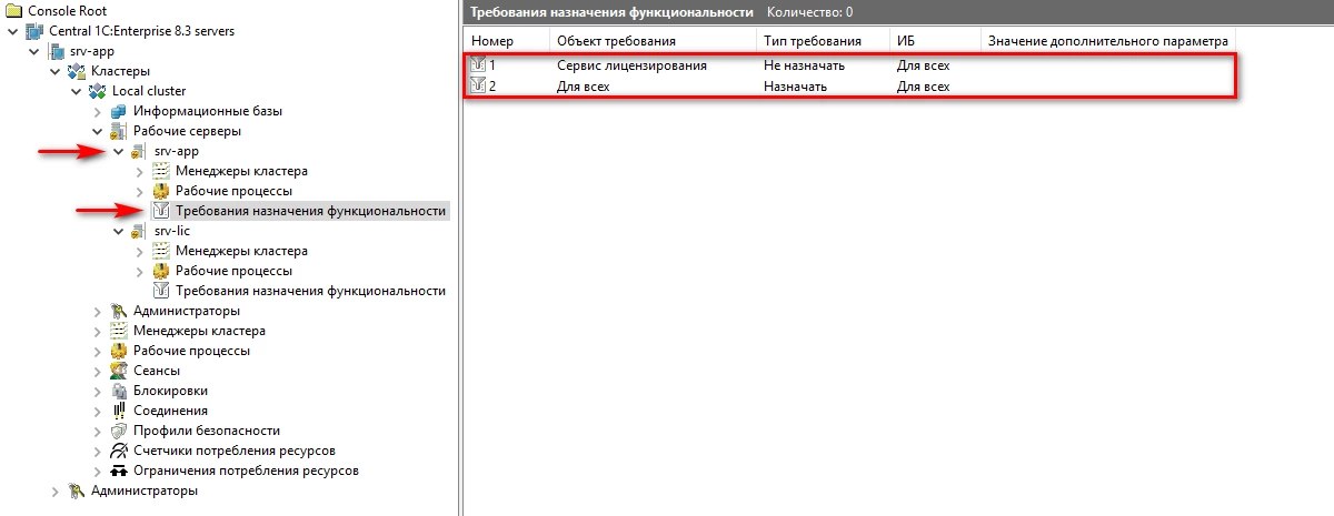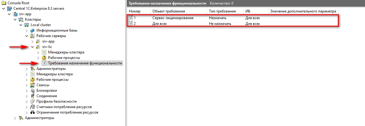 - Для сервера лицензирования настраиваем «Требования назначения функциональности»: