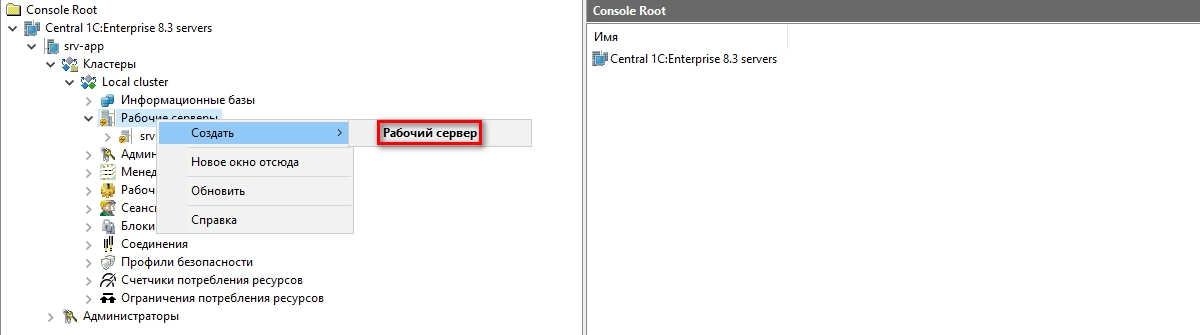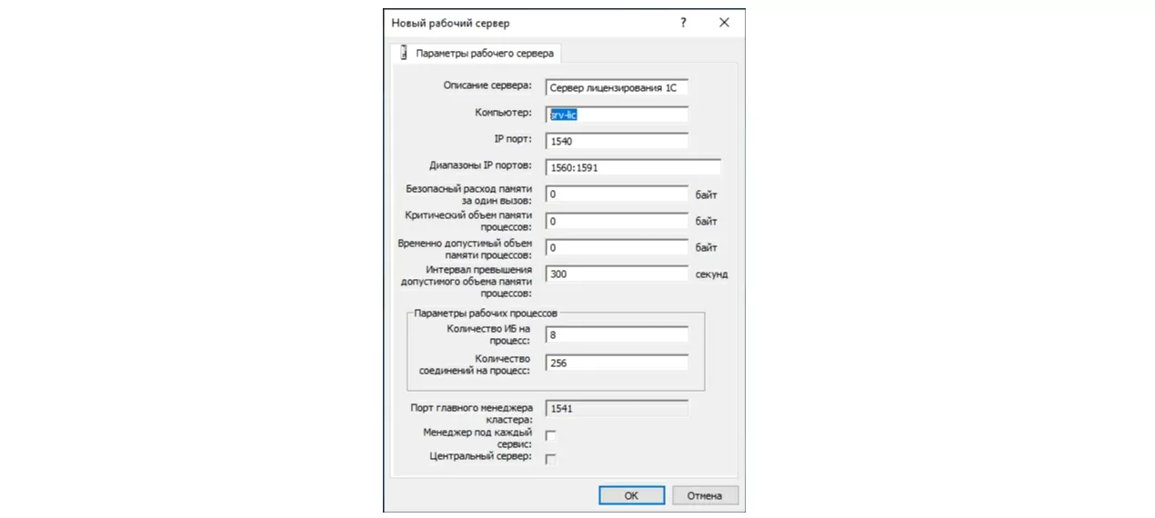 - В консоли администрирования на сервере приложений добавляем «Рабочий сервер» и указываем параметры сервера лицензирования.