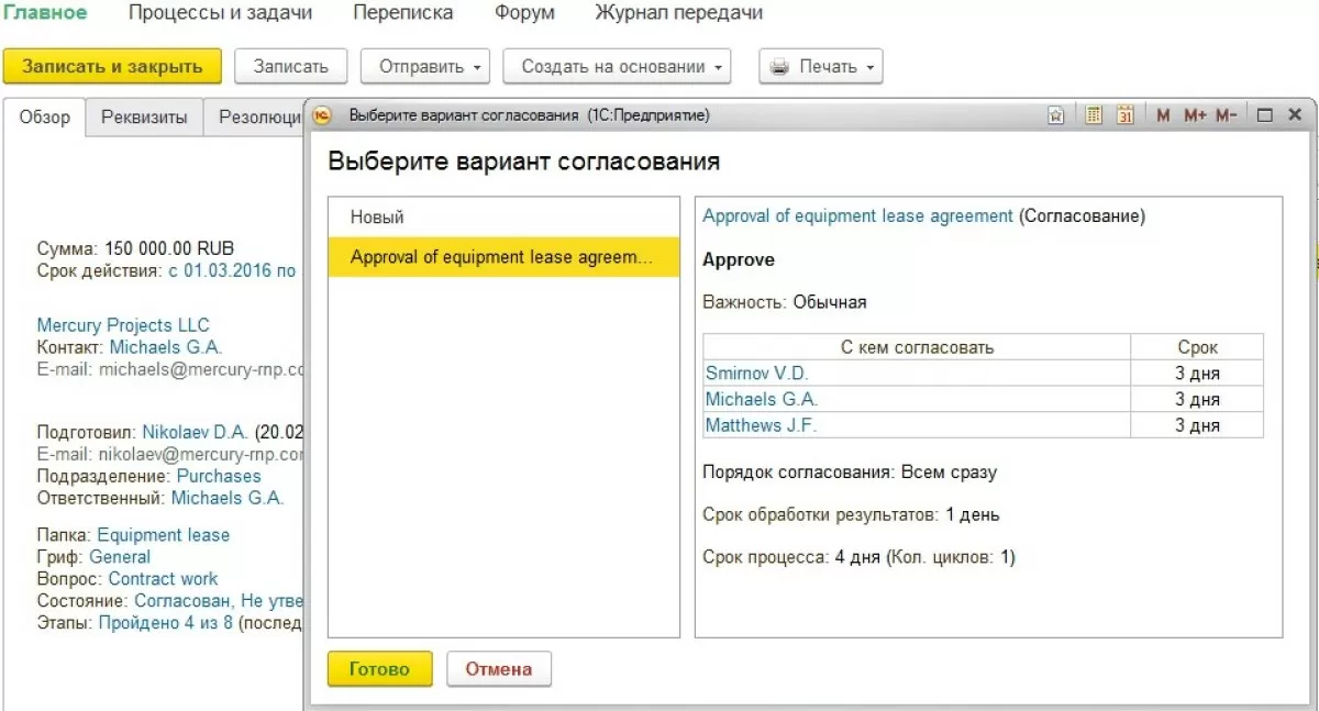 - Использование 1С Документооборота для построения сквозного бизнес-процесса закупочной процедуры в компании