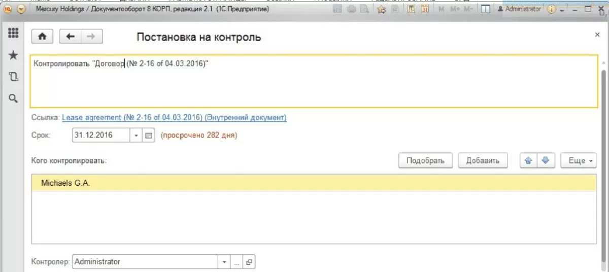 - Учет документов. Система 1С дает возможность ведения учета всей исходящей и входящей документации. В любое время есть возможность просмотра и контроля всей истории переписки;