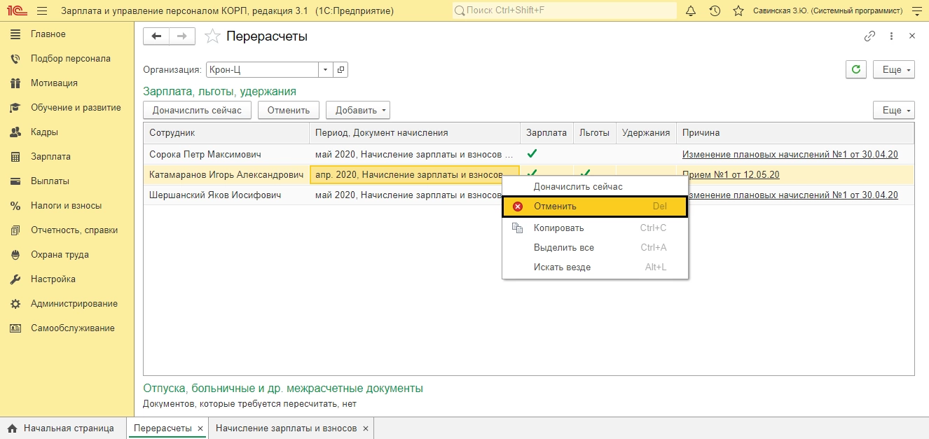 Причины перерасчетов в 1С:ЗУП
