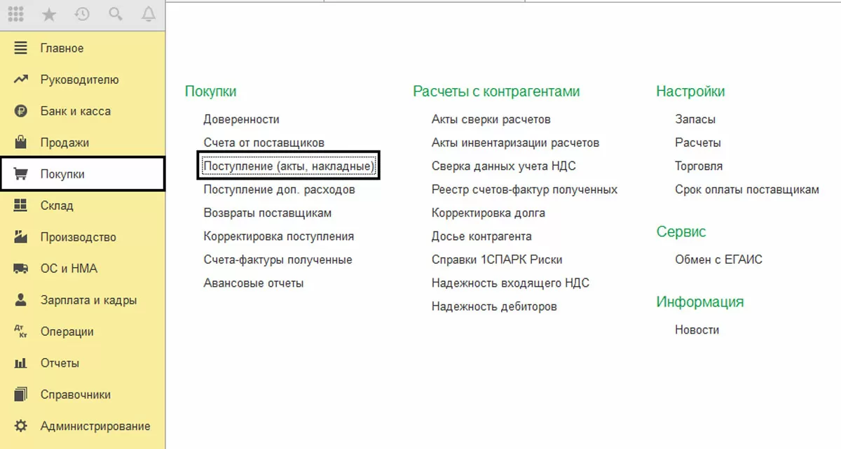 Рассмотрим порядок их отражения на примере программы 1С:Бухгалтерия 8.3 ПРОФ, но начнем мы с отражения операции поступления самих ТМЦ через «Поступление (акты, накладные)».
