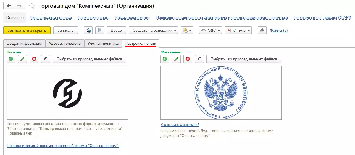 Размещение логотипа и факсимиле – это простой пример того, что уже предоставляют решения на платформе «1С:Предприятие» для деятельности любых компаний.