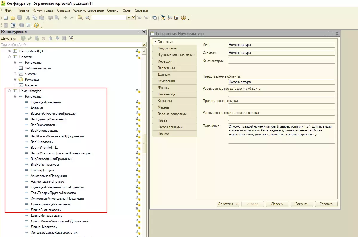 Для дополнительного справочника можно назначить: реквизиты, табличные части, формы элемента, группы, списка, выбора и выбора группы, а также команды и макеты.