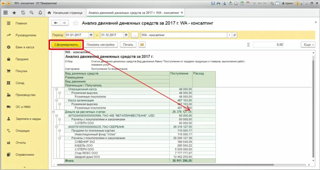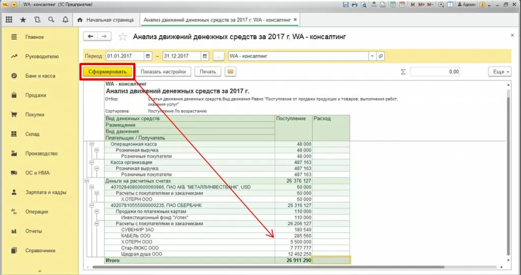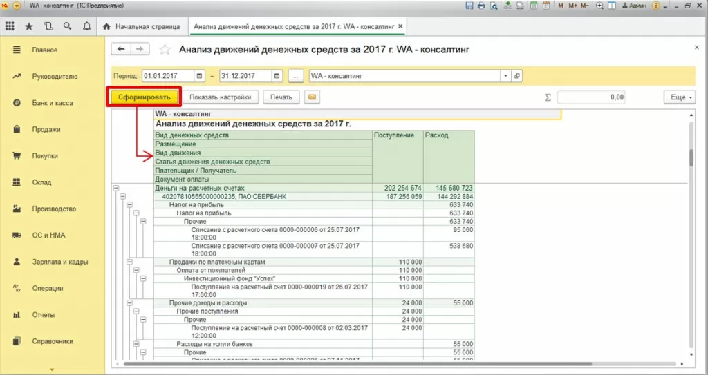 Отчет позволит увидеть укрупненные, но структурированные денежные потоки.